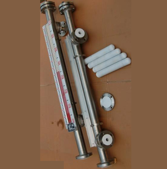 ⑴(普通型),它是由本體、浮子、面板框等部件組成。液位計與容器上下法蘭連接,連接時中間加閥門,安裝在一側(cè)。它適用于在不需要保溫或冷卻,且介質(zhì)對奧氏體不銹鋼不腐蝕的場合。