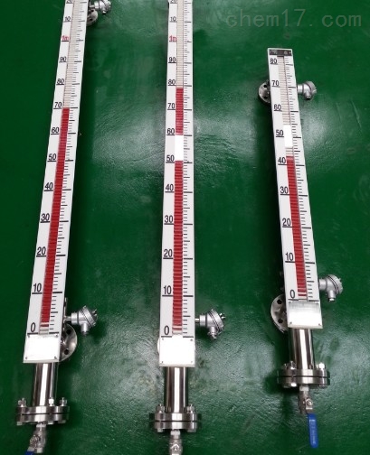 磁翻板液位計是本公司引進、吸收國外同類產品,并加以吸收、消化、提高,按原化學工業(yè)部頒布的磁性液位計標準T21584-95研制生產的產品??捎糜诟鞣N塔、罐槽、球形容器和鍋爐等設備的介質液位檢測。該系列磁性液位計可以做到高密封,防泄漏和適應高壓高溫、腐蝕性條件下的液位測量,具有可靠的安全性,它彌補了玻璃板(管)液位計指示不清晰,易破碎的不足,不受高、低溫度劇變的影響,不需多組液位計的組合。全過程測量無盲區(qū),顯示醒目、讀數(shù)直觀,且測量范圍大。特別是現(xiàn)場指示部分,由于不與液體介質直接接觸,所以對高溫、高壓、高粘度、有毒有害、強腐蝕性介質,更顯其優(yōu)越性。因此,它比傳統(tǒng)的玻璃管,板式液位計具有更高的可靠性、安全性、先進性、實用性。
