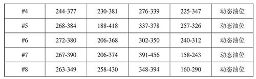 通過(guò)表7,按照*大波幅=動(dòng)態(tài)*大值-靜態(tài)*小值、*小波幅=動(dòng)態(tài)*小值-靜態(tài)*大值可以得出油位*大波幅和*小波幅,詳見(jiàn)表8: