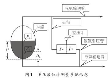通常情況下,氨罐內(nèi)液氨溫度t1等于旁通管內(nèi)液氨溫度t2,即d1=d2,則h1=h2,則通過磁翻板液位h2便可知h1;但是,磁翻板液位計(jì)受環(huán)境溫度影響大,因t1≠t2,則d1≠d2,于是h1≠h2,使磁翻板液位計(jì)誤差產(chǎn)生,受環(huán)境溫度影響大。