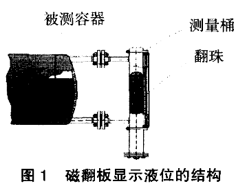 磁翻板是顯示液位的部分(見圖1)。磁翻板內的翻珠內裝有柱狀的磁鋼,而所有的翻珠均勻布置于鋁制的卡槽內,當液位計中液位上升時,由于磁鋼受浮子內磁場的影響帶動翻珠由白色翻轉為紅色;反之液位下降時,翻珠由紅色翻轉為白色。這樣磁翻板在無需任何電源的情況下就可以反應出容器內液位的變化。