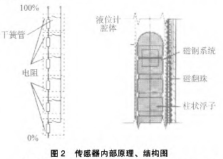 傳感器的作用是采樣液位高低位置并轉(zhuǎn)換成標準信號傳送至控制室,傳感器實際由干簧管和電阻組成。當(dāng)浮子內(nèi)磁鋼位置變化后,磁場通過器壁帶動傳感器內(nèi)干簧管觸點吸合。干簧管吸合的位置決定回路的阻抗大小,干簧管的通常位置為10mm1組。回路的大小正好與液位的高低成正比,這樣*后由置于傳感器外殼內(nèi)的變送器將電阻信號轉(zhuǎn)換成標準的電流信號,送至控制室。具體結(jié)構(gòu)、原理圖見圖2。
