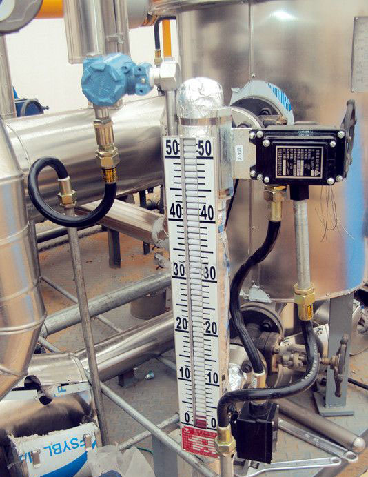 鑒于煤油儲(chǔ)罐液位計(jì)具有被測(cè)介質(zhì)與指示機(jī)構(gòu)完全隔離,密封性能好,防泄漏、適應(yīng)腐蝕條件下的液位測(cè)量等優(yōu)點(diǎn),且可靠性高、耐振性能好、結(jié)構(gòu)簡(jiǎn)單、安裝方便、維護(hù)費(fèi)用低,現(xiàn)已在電力、石油、化工、冶金、環(huán)保、船舶、建筑、食品等行業(yè)得到廣泛應(yīng)用。本公司用戶上海某公司帶熱壓縮器低溫多效蒸餾海水淡化的濃鹽水、蒸餾水及冷凝水液位測(cè)量都采用帶遠(yuǎn)傳的煤油儲(chǔ)罐液位計(jì)。為了防止結(jié)垢,需在低溫的情況下讓海水達(dá)到沸點(diǎn),要求海水淡化裝置內(nèi)部處于負(fù)壓狀態(tài),正常運(yùn)行時(shí)為-0.093MPa左右,此為用戶煤油儲(chǔ)罐液位計(jì)使用須達(dá)到的工藝要求,以下說(shuō)明即為儀表在負(fù)壓狀態(tài)下發(fā)生管路漏氣的典型故障分析情況。