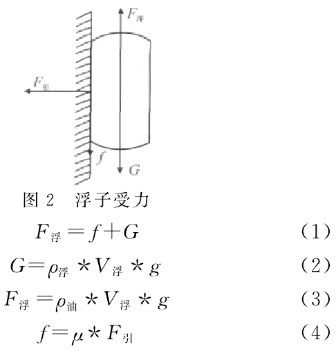 p浮——浮筒內(nèi)浮子的平均密度,kg/m3;V浮——浮子浸人油中部分體積,m3;