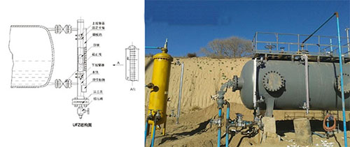 2、在罐內(nèi)不帶壓力的狀態(tài)下以手動方式往儲罐內(nèi)注水,當水位略高于液位計進水管時停止注水,尿素溶液液位計打開下連接法 蘭口手動球閥E并松開罐體與被校液位計間的連接法蘭F(不取下,使水流不過沖),直到管 路中 無涌動流時,關閉E,取下法蘭,待罐內(nèi)液體平穩(wěn)時打開E,再待呈滴流狀態(tài),穩(wěn)定1min(必要 時可通過排水閥門排水,提高檢測效率);