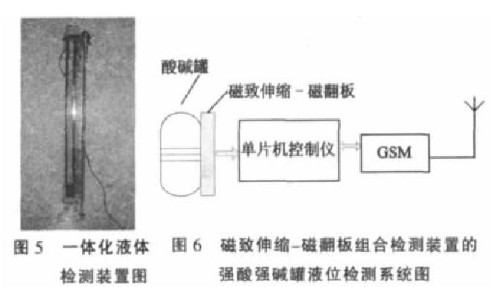 摘要:基于磁致伸縮液位傳感器和磁翻板液位檢測裝置的工作原理,將磁致伸縮傳感器和磁翻板液位計(jì)組合,通過實(shí)驗(yàn)再將磁致伸縮和磁翻板裝置共用一個(gè)磁浮子,并結(jié)合單片機(jī)緩和GSM技術(shù)實(shí)現(xiàn)了磁致伸縮-磁翻板一體化液位檢測裝置對強(qiáng)酸、強(qiáng)堿罐酸堿液位的非接觸式測量。