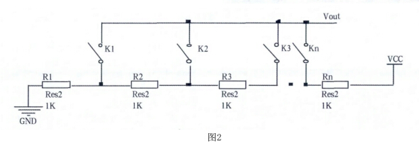 傳感器部分由串聯(lián)的電阻構(gòu)成,電阻一端接電源。另一點接地,每個電阻分得的電壓是