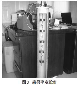 采用一根鋼制桿下端連接一個砝碼,砝碼重量必須為 300g,每個砝 碼采用懸掛式方式加入,每增加一個砝碼,讀數(shù)一次。簡易率定法速度很 慢,效率*低,無法適用于大批量設(shè)備的率定。
