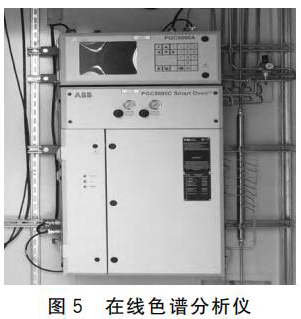 (1)利用電加熱氣化取樣探頭,把測量介質(zhì)引入在線色譜分析儀,實時分析氣體組分。在使用在線色譜分析儀(圖5)時,需要配合標氣及載氣,提前對色譜進行標定。預(yù)處理部分,先把每個取樣管路取下來吹掃5~10min(取樣探頭壓力設(shè)定為2~3kg),保證沒有雜質(zhì)摻入,然后接上管線。要注意定期檢查色譜載氣(H2或者N2)使用情況,及時更換。如果更換不及時,在使用完之前,*好停用色譜,防止燒壞檢測器。
