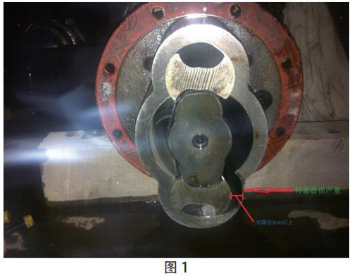 2015 年 8 月 10 日 17:50 機組在運行過程中“機組高位油箱事故低油位動作”事故停機?,F(xiàn)場檢查發(fā)現(xiàn)機組高位油箱油位為 60mm,低于下限值 90mm。進一步檢查發(fā)現(xiàn),稀油站 2# 低壓油泵空轉(zhuǎn),沒有打油,振動、聲音較大。18:18 維護人員對 2# 低壓油泵進行了搶修拆解。發(fā)現(xiàn)油泵從動螺桿與襯套間隙過大,達 1cm 以上,襯套磨損嚴重(見圖 1)。油泵損壞,無法打油。