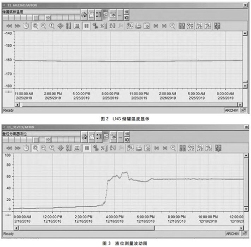 然后利用多孔法蘭(結(jié)合LNG項(xiàng)目的實(shí)際情況來選擇法蘭的孔數(shù)以及尺寸大?。?,將其接到LNG罐頂?shù)臏囟茸兯推鹘泳€箱內(nèi)部,再使用多芯電纜把4~20mA信號發(fā)送到控制系統(tǒng)?,F(xiàn)場安裝RTD熱電阻建議選用雙支,方便以后檢修更換。圖2為LNG儲罐溫度顯示。