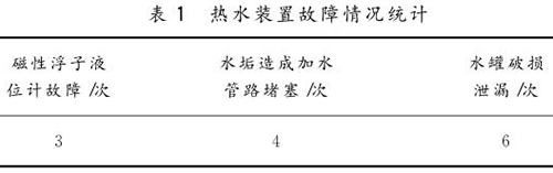 通過多年的使用,總結(jié)出熱水裝置在生產(chǎn)使用過程中存在以下問題。
