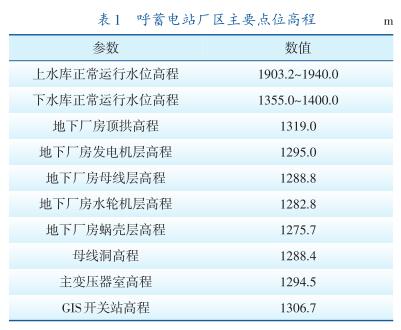 呼蓄電站廠區(qū)主要點(diǎn)位高程見表1。