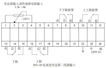 報(bào)警控制:面板有上限(H)、上上限(HH)或下限(L)、下下限(LL)報(bào)警燈及對(duì)應(yīng)的輸出繼電器。當(dāng)顯示值高于或低于用戶(hù)設(shè)定的上限、上上限或下限、下下限值時(shí),對(duì)應(yīng)的報(bào)警燈閃爍顯示,且對(duì)應(yīng)的繼電器接點(diǎn)狀態(tài)改變,同時(shí)伴有表內(nèi)蜂鳴器報(bào)警聲響。