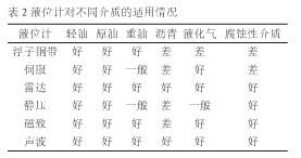 2、常見液位計性能比較和適用介質(zhì)