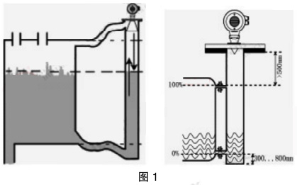 如圖1所示,導(dǎo)波雷達(dá)液位計(jì)是依據(jù)時(shí)域反射原理(TDR)為基礎(chǔ)的雷達(dá)液位計(jì),雷達(dá)液位計(jì)的電磁脈沖以光速沿鋼纜或探棒傳播,當(dāng)遇到被測(cè)介質(zhì)表面時(shí),雷達(dá)液位計(jì)的部分脈沖被反射形成回波并沿相同路徑返回到脈沖發(fā)射裝置,發(fā)射裝置與被測(cè)介質(zhì)表面的距離同脈沖在其間的傳播時(shí)間成正比,經(jīng)計(jì)算得出液位高度。某電廠經(jīng)過技術(shù)改造采用波導(dǎo)雷達(dá)后,液氨液位波箱現(xiàn)象消失,儲(chǔ)罐運(yùn)行良好。