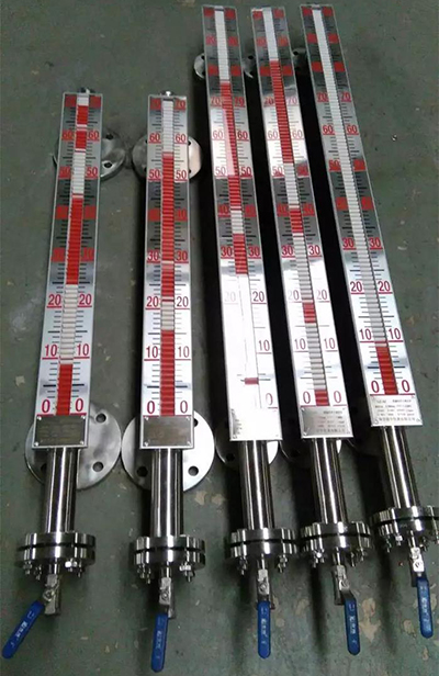 根據(jù)浮力原理,浮子在測(cè)量管內(nèi)隨液位的升降而上、下移動(dòng),浮子內(nèi)的永久磁鋼通過耦合作用,驅(qū)動(dòng)紅、白色翻柱翻轉(zhuǎn)180°,液位上升時(shí)翻柱由白色轉(zhuǎn)為紅色,下降時(shí)由紅色轉(zhuǎn)為白色,從而實(shí)現(xiàn)液位指示。